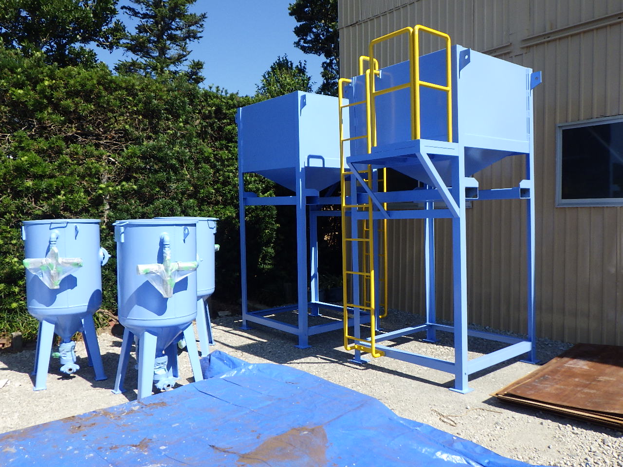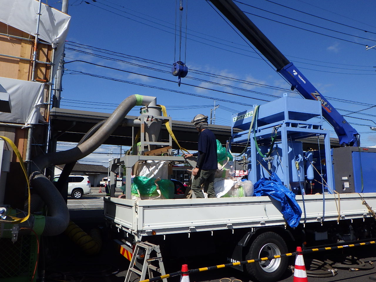 ケレン実施後、PCB・鉛が含まれている塗膜片とブラストにより使用された研削材(スチールグリッド)の混合物が輩出されているので、専用のジェクター及び集塵機で吸引します。